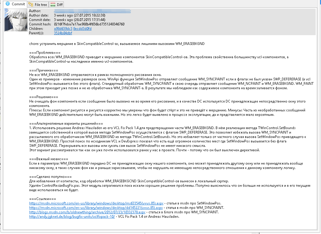 Полный зоопарк стилей и практически полное отсутствие информативности. Чтобы понять, что же сделано в коммите, необходимо смотреть код и собирать по крупицам информацию из разных источников. Разработчики, которые заползали в такой код, могли многократно ходить по одним и тем же граблям. А про автора думать самые нелицеприятные вещи, задаваясь вопросом под какими запрещенными веществами код был написан. Ирония заключается в том, что нередко рассерженный разработчик является автором злосчастного коммита. Теперь текст коммита стал вот таким: