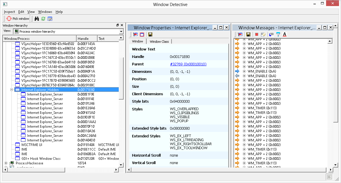 Очевидно, что WebBrowser обрабатывает какие-то сообщения. Но поиск их казался гиблой идеей. В действительности оказалось, что ни так все плохо. С помощью Window Detective было обнаружено, что в момент загрузки происходит подозрительная посылка сообщений окну с именем класса ‘Internet Explorer_Hidden’. Решил проверить и выбрал из очереди оконных сообщений в момент загрузки документа сообщения предназначенные только этому окну. К моему удивлению — все заработало.